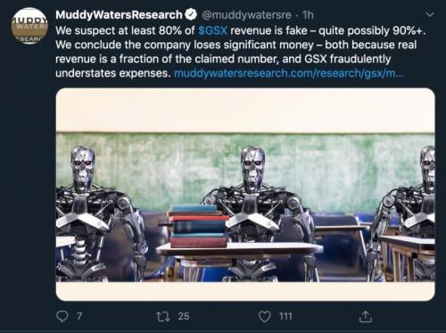 浑水在报告中称:“我们做空跟谁学,是因为我们得出结论:这几乎是一场彻头彻尾的欺诈。”