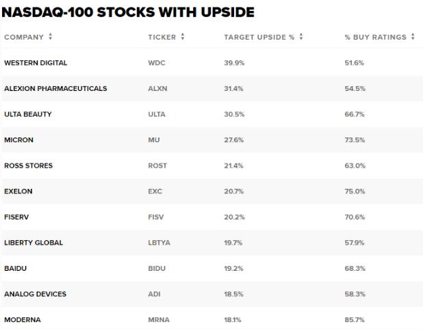 纳斯达克指数中的大盘股一直是股市3月低点以来大幅反弹的领涨股,但华尔街分析师仍认为其中的几支股票还能有可观的上升空间。